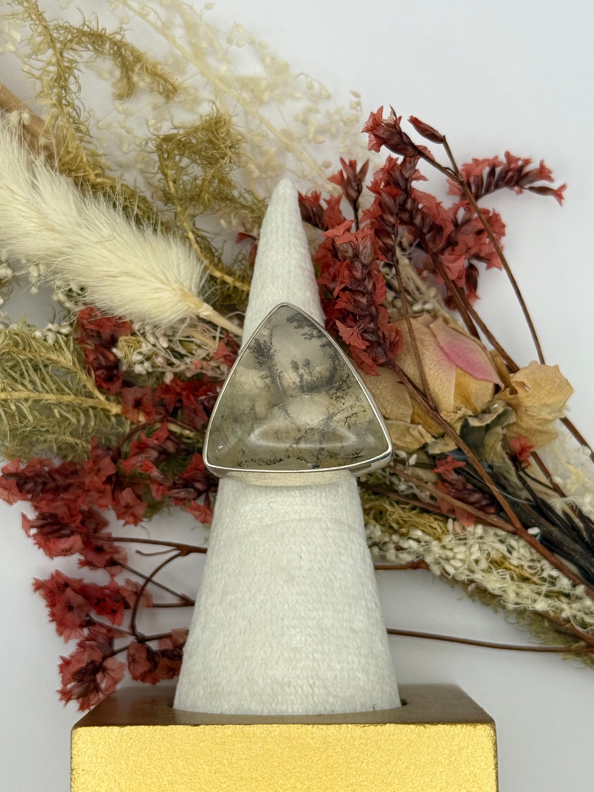 Sterling Silver Dendritic Agate Gemstone Adjustable Handmade Ring